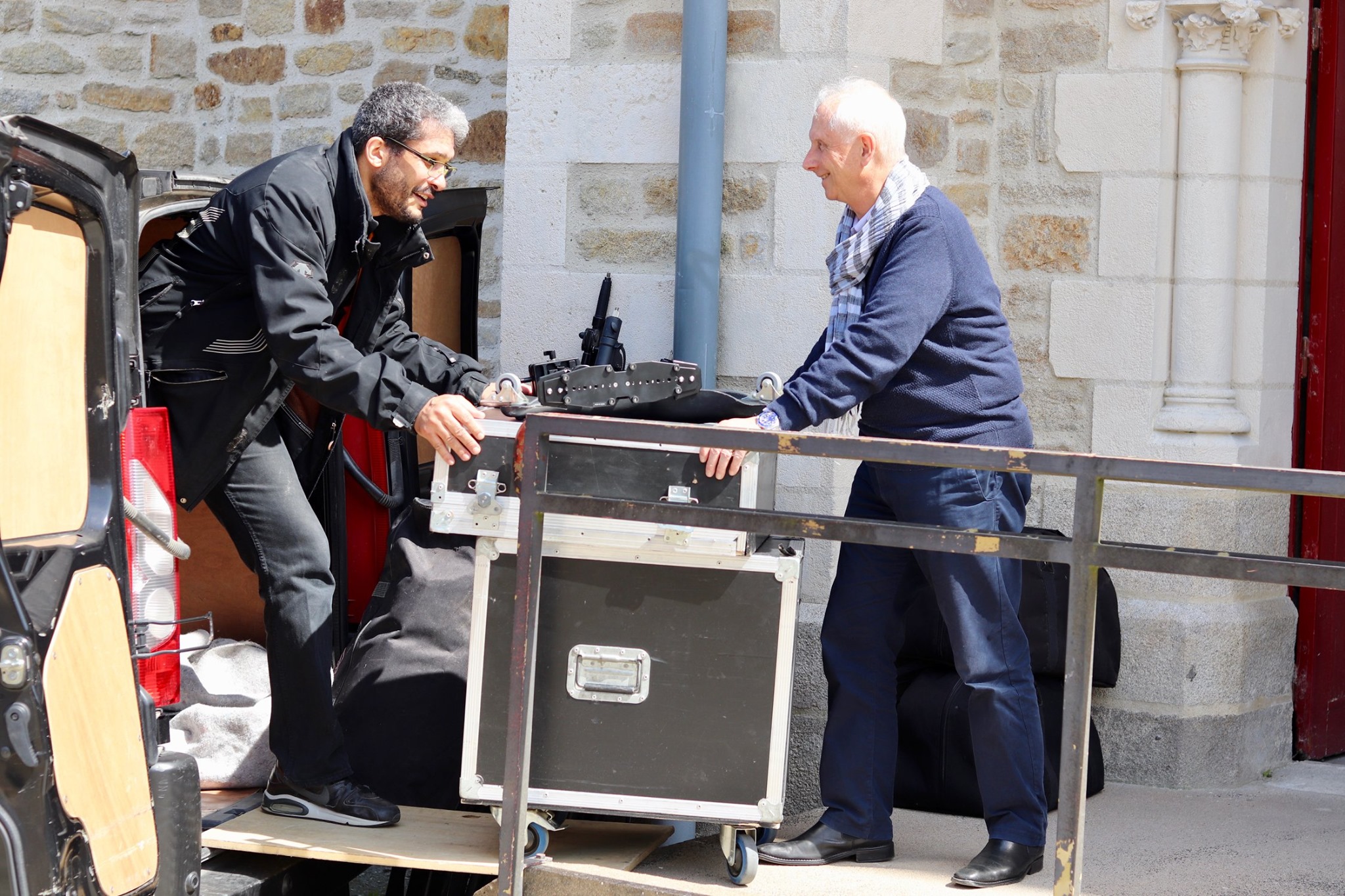 - 1 personne (forte) pour nous aider à passer les marches